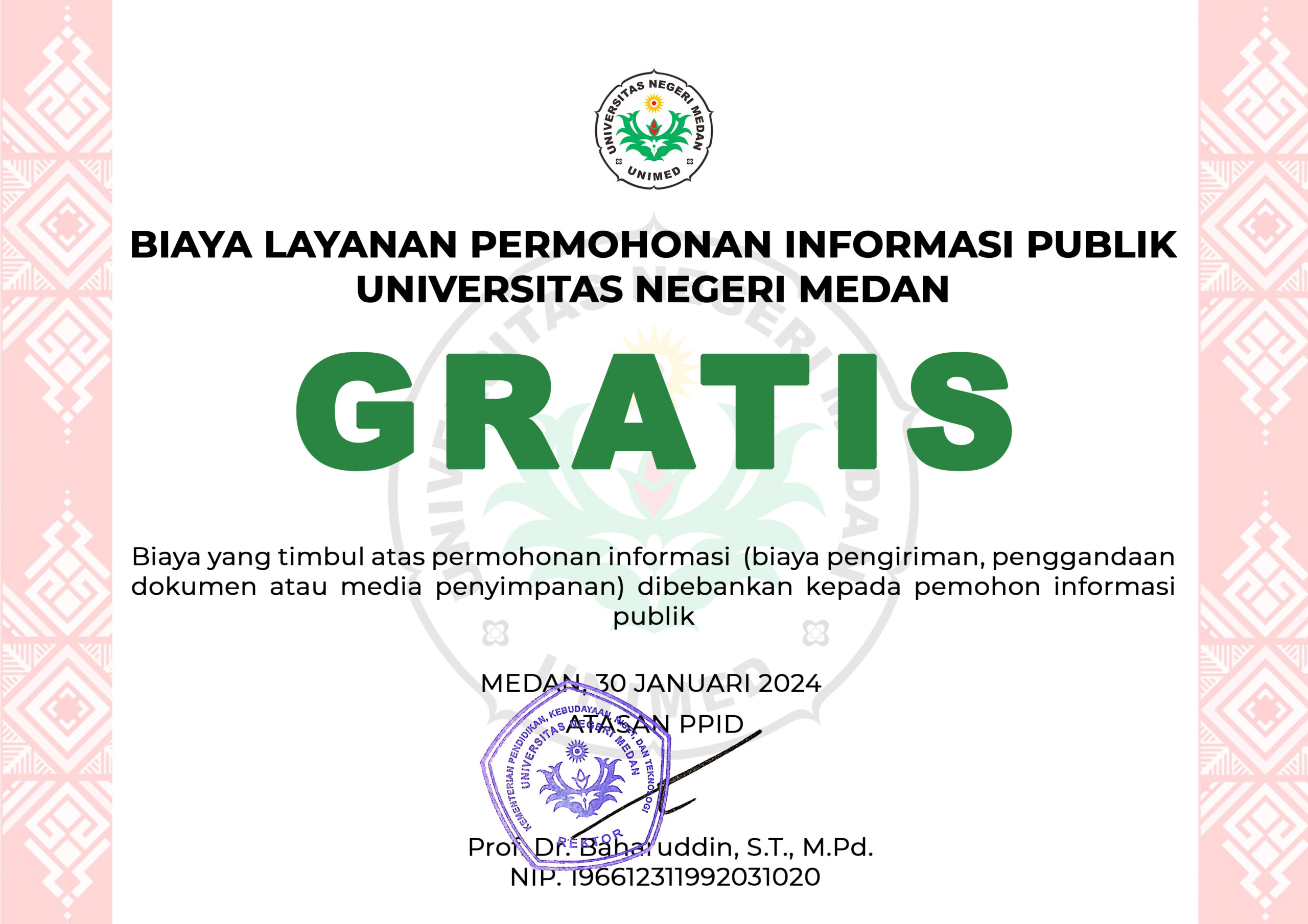 Universitas Negeri Medan merupakan salah satu satuan kerja di lingkungan Kementerian Pendidikan dan Kebudayaan (Kemendikbud) yang juga mempunyai fungsi atau tugas melaksanakan kegiatan Pelayanan Publik. Mulai dari tugas pokok utama pelaksanaan tridharma perguruan tinggi sampai pada penyelenggaraan pelayanan administratif yang disediakan kepada seluruh civitas universitas, pengguna dan masyarakat.