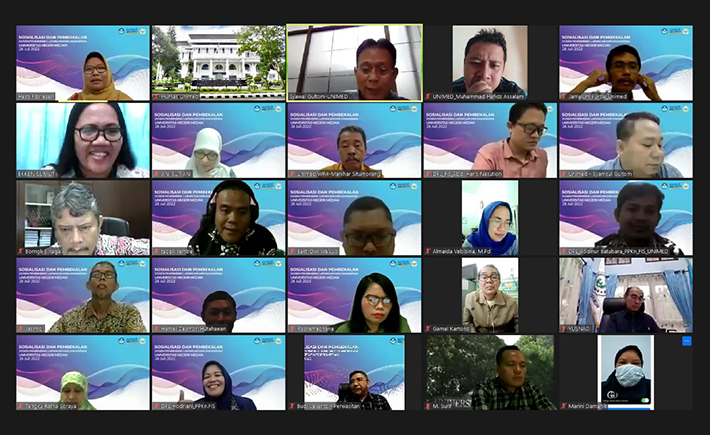 Dalam rangka mempersiapkan mahasiswa Kuliah Kerja Nyata (KKN) tahun 2022, Universitas Negeri Medan melakukan pembekalan kepada ratusan Dosen Pendampingan Lapangan (DPL KKN) melalui virtual zoom meeting pada Selasa, (8/6). Acara ini digelar guna menguatkan komitmen bersama dan menyamakan persepsi dalam pelaksanaan KKN nantinya, sehingga memiliki pandangan yang sama terhadap pelaksanaan KKN Mahasiswa serta membantu para mahasiswa dalam mensukseskan pelaksanaan KKN di semua lokasi penempatan.