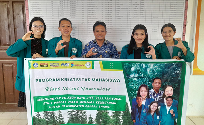 Mahasiswa Fakultas Ilmu Sosial Universitas Negeri Medan yang tergabung dalam Tim Penelitian Program Kreativitas Mahasiswa bidang Riset Sosial Humaniora melakukan penelitian dengan judul “Mengungkap Foklor Batu Nipe : Kearifan Lokal Etnik Pakpak Dalam Menjaga Kelestarian Hutan Di Kabupaten Pakpak Bharat”. Tim ini terdiri dari ketua tim, Anggi Deviliana Saragih dari Program Studi Pendidikan Sejarah dengan anggota Muhammad Fazlan dari Program Studi Pendidikan Sejarah, Eliza Solina br Pandiangan dari Program Studi Pendidikan Sejarah, Elia Banurea dari Program Studi Pendidikan Antropologi, dan Saparutdin Brutu dari PPKN bersama dosen pendamping Muhammad Rivai, M.A dari Program Studi Pendidikan Sejarah .