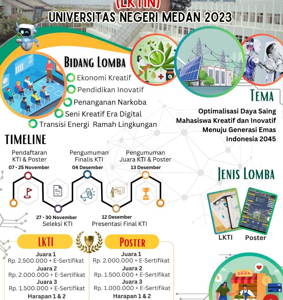 Lomba Karya Tulis Ilmiah Nasional Universitas Negeri Medan 2023 Author: admin unimed Published on: 8 November 2023 Published in: Event Post navigation Previous Article Previous Article Tim PKM UNIMED Terbanyak Lolos ke PIMNAS 36 se-Sumut dan Terbanyak ke-4 dari PTN LPTK di Indonesia Next Article Next Article Seminar Nasional Jurusan Matematika 2023: Transformasi Matematika dan Teknologi Matematika Unggul untuk Pendidikan Indonesia Maju You may also like Mahasiswa FT UNIMED Torehkan Prestasi Gemilang di Ajang PAPTEKINDO 2025 UNP Event The 6th International Seminar of Language, Art, and Literature Education Event