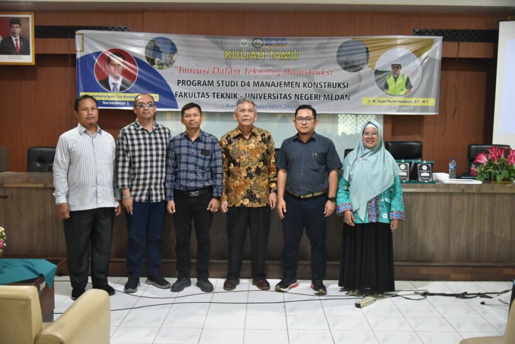 Dalam rangka untuk membahas dan memperdalam pengetahuan tentang inovasi kostruksi dalam keteknikan membantu dalam mengidentifikasi dan menerapkan material konstruksi yang lebih ramah lingkungan. Program Studi D4 Manajemen Konstruksi Fakultas Teknik Universitas negeri Medan mengadakan Kuliah Tamu dengan tema “Inovasi dalam Teknologi Konstruksi”. Kegiatan ini diadakan di Ruangan Serbaguna lt. II FT pada Kamis (30/11).