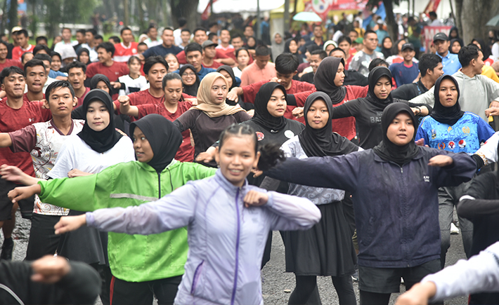 Ratusan Sivitas Akademika Antusias Ikuti Fun Aerobic Gebyar Projek Mahasiswa Piala Dekan FIK UNIMED 2023
