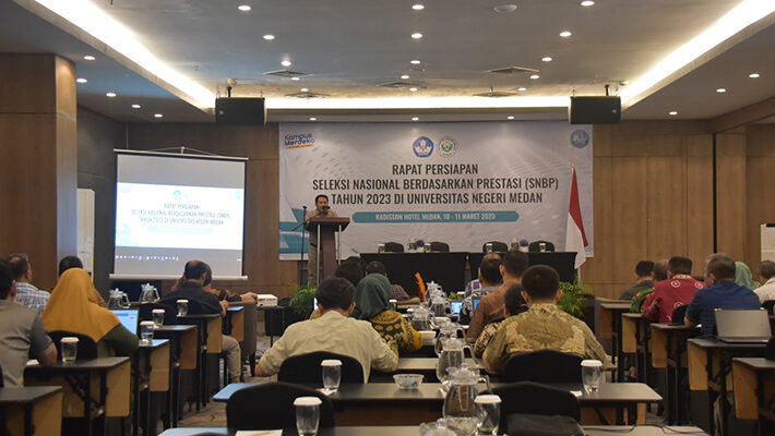 Dalam rangka persiapan pelaksanaan Seleksi Nasional Berdasarkan Prestasi (SNBP) tahun 2023, Universitas Negeri Medan menggelar rapat koordinasi bersama unsur pimpinan di tingkat universitas yang terdiri dari Rektor, ketua Senat, Wakil Rektor, Dekan, Direktur Pascasarjana, Kepala Biro, Ketua Lembaga, Tim Penilai Portofolio, Perwakilan Kepala Sekolah dan