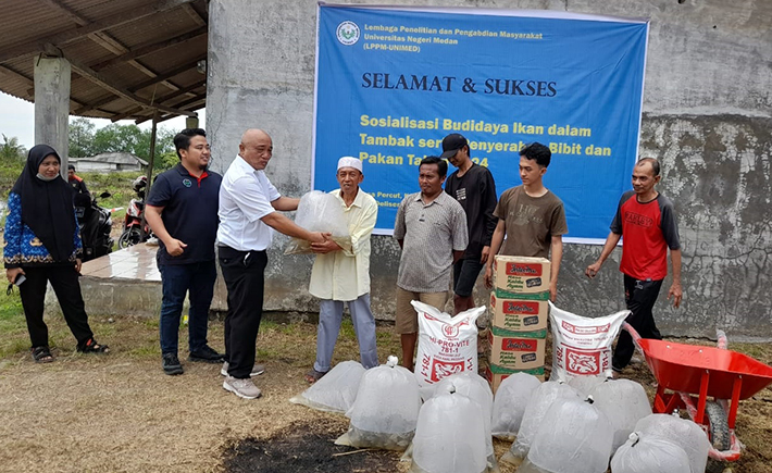 Lembaga Penelitian dan Pengabdian Masyarakat, Universitas Negeri Medan (LPPM-UNIMED) menyelenggarakan kegiatan berupa Sosialisasi Budidaya Ikan dalam Tambak serta Penyerahan Benih dan Pakan kepada Kelompok Nelayan. Kegiatan dimulai pada pukul 10.00 WIB dengan tema pokok “Tambak yang Berhasil” dan diakhiri dengan penyerahan benih dan pakan serta penaburan ke dalam tambak. Pada hari Sabtu, tanggal 01 Juni 2024, bertempat di Desa Percut, Kecamatan Percut Seituan, Kabupaten Deliserdang.