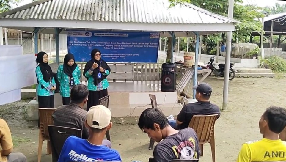 Untuk mengatasi masalah ini, tim dosen Universitas Negeri Medan, yang terdiri dari Dian Septiana, M.Sc sebagai ketua, serta anggota Fanny Ramadhani, M.Kom, Nadrah Afiati, M.Pd, Nurul Maulida Surbakti, M.Sc, dan Prihatin Ningsih Sagala, M.Sc, menginisiasi program sosialisasi Ear Tag Sapi Secure QR Code. Program ini didampingi oleh pendamping LPPM Dani Sholihin, MT, dan melibatkan lima orang mahasiswa. Dalam kegiatan ini, Fahrizal Rambe sebagai narasumber utama mengajak para peternak untuk memaksimalkan pengelolaan dan pemasaran sapi kurban mereka.