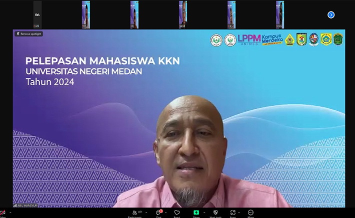 Univeristas Negeri Medan gelar acara Pelepasan Mahsiswa Unimed Peserta KKN 2024 secara online dengan menggunakan aplikasi Zoom Meeting dan Live Youtube yang dilaksanakan pada Jumat 05 Juli 2024. KKN tahun 2024 ini bertemakan “Optimalisasi Potensi Desa Menuju Desa Sejahtera”.