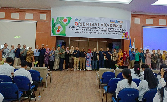 Universitas Negeri Medan mengadakan kegiatan Orientasi Akademik Mahasiswa Program Pendidikan Profesi Guru (PPG) Calon Guru Gelombang II Tahun 2024. yang dilaksanakan di Gedung Prof. Dr. Syawal Gultom,M.Pd. Aula A FMIPA Lt.III, Kamis 6 September 2024.