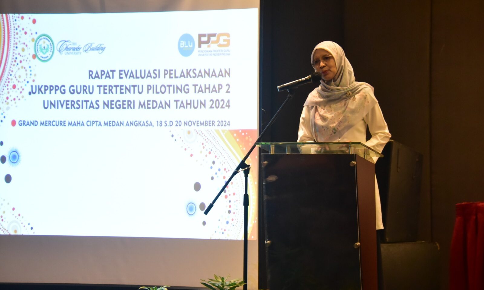 Universitas Negeri Medan menggelar rapat evaluasi pelaksanaan Uji Kompetensi Peserta Pendidikan Profesi Guru (UKPPPG) Guru Tertentu Piloting 2 di Grand Mercure Maha Cipta Medan Angkasa, pada 18 – 20 November 2024. Acara tersebut dibuka oleh Plh. Rektor Unimed Dr. Ani Sutiani, M.Si., Turut diikuti oleh Dekan Fakultas, Direktur Pascasarjana, Ketua Lembaga, Kaprodi, Ketua dan panitia pelaksana PPG Unimed, Dosen, Guru Pamong dan Admin IT.