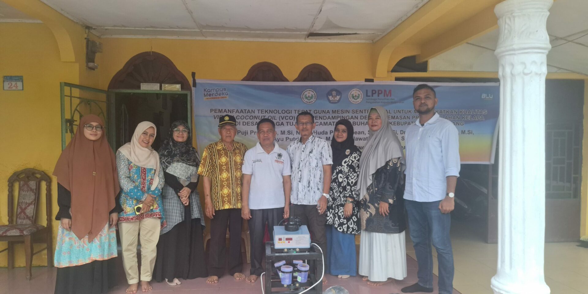 Deli Serdang, 17 Mei 2025 – Sebagai bentuk implementasi tridarma perguruan tinggi, tim pengusul kegiatan Program Kemitraan Masyarakat (PKM) Universitas Negeri Medan (UNIMED) melaksanakan kegiatan yang bertemakan peningkatan kualitas Virgin Coconut Oil (VCO) dengan memanfaatkan teknologi tepat guna mesin sentrifuge dan pendampingan dalam desain kemasan produk di Desa Telaga Tujuh, Kecamatan Labuhan Deli Kabupaten Deli Serdang.