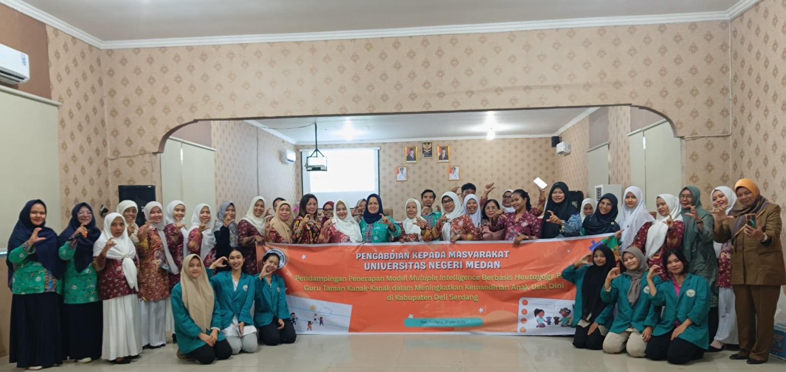 Deli Serdang, 27 Mei 2025 — Tim dosen Universitas Negeri Medan (Unimed) melaksanakan kegiatan Pengabdian kepada Masyarakat di Aula Dinas Pendidikan Kabupaten Deli Serdang. Kegiatan ini bertujuan untuk memperkuat kapasitas guru-guru taman kanak-kanak melalui program bertajuk “Pendampingan Penerapan Model Multiple Intelligence Berbasis Heutagogy pada Guru Taman Kanak-Kanak dalam Meningkatkan Kemandirian Anak Usia Dini di Kabupaten Deli Serdang.”