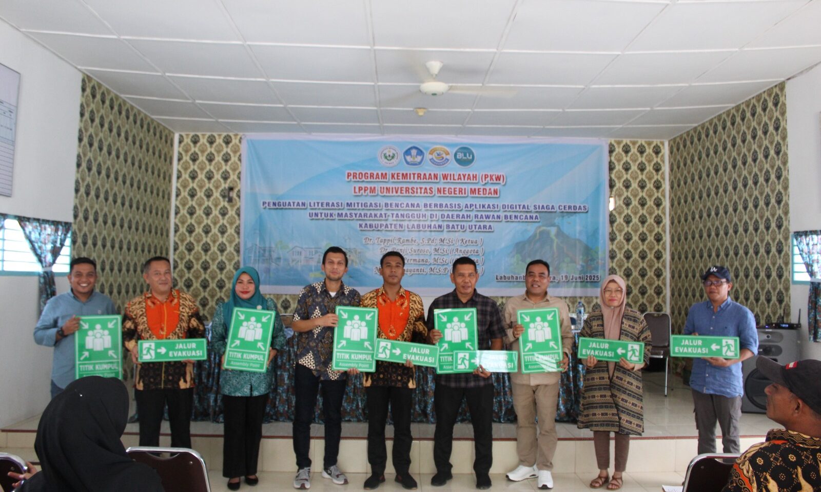 Labuhan Batu Utara, 19 Juni 2025 — Dalam upaya meningkatkan kesiapsiagaan dan ketangguhan masyarakat terhadap bencana, tim dosen dari Universitas Negeri Medan (UNIMED) melaksanakan kegiatan Pengabdian kepada Masyarakat bertajuk “Pemanfaatan Sistem Informasi Geografis (SIG) untuk Meningkatkan Literasi dan Partisipasi Masyarakat dalam Mitigasi Bencana di Desa Sidua Dua, Kabupaten Labuhan Batu Utara.”