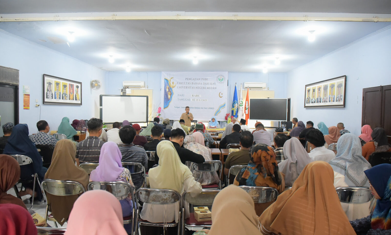 Keluarga besar Fakultas Bahasa dan Seni Unimed menggelar pengajian PHBI FBS. Kegiatan berlangaung di gedung Dekanat Lantai III FBS Unimed pada Rabu, (02/07/25).