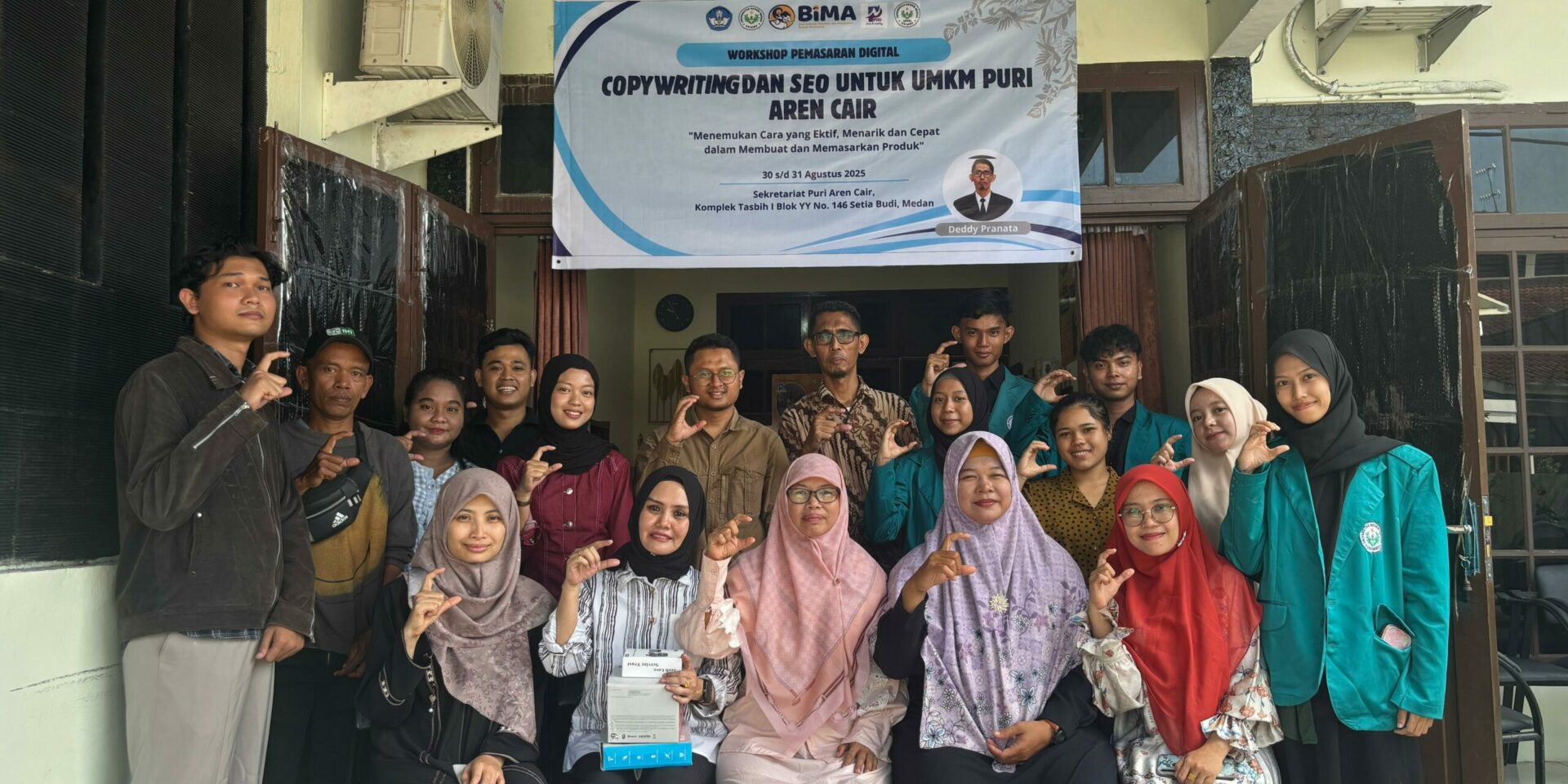 Medan, 31 Agustus 2025 –Pengabdian Kepada Masyarakat (PKM) berbentuk workshop intensif. Kegiatan bertajuk “Workshop Pemasaran Digital: Copywriting dan SEO untuk UMKM Puri Aren Cair” ini diselenggarakan selama dua hari, yaitu pada tanggal 30–31 Agustus 2025, bertempat di Kantor Sekretariat UMKM Puri Aren Cair, Komplek Tasbih I Blok YY No. 146, Setia Budi, Medan.