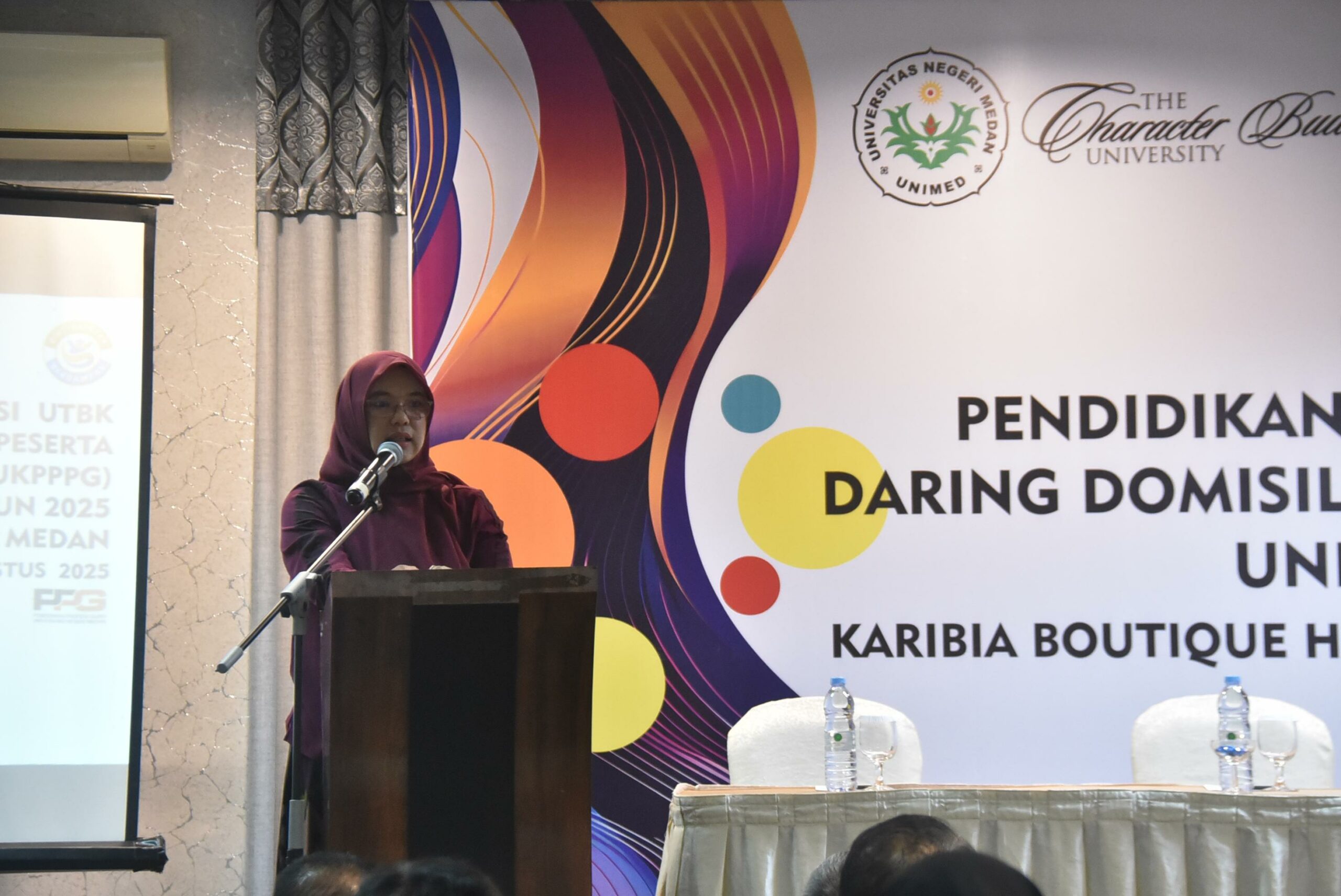 Dalam sambutannya menyampaikan apresiasi dan penghargaan kepada panitia pelaksana dan seluruh undangan yang hadir dalam rapat evaluasi UTBK UKPPPG Daring Domisili Periode 2 Tahun 2025 Unimed.
