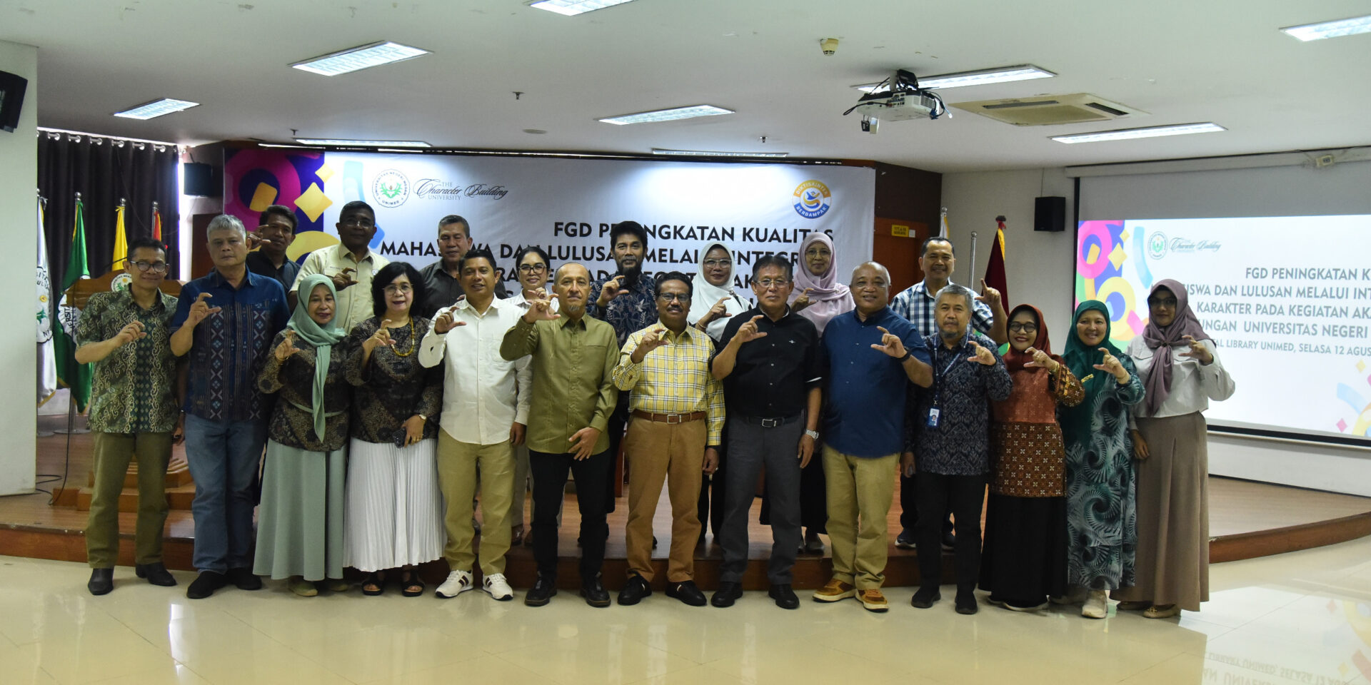 Dalam upaya meningkatkan kualitas mahasiswa dan lulusan yang kompeten dan berkarakter, Universitas Negeri Medan (UNIMED) menyelenggarakan Focus Group Discussion (FGD) bertema “Peningkatan Kualitas Mahasiswa dan Lulusan Melalui Integrasi Karakter pada Kegiatan Akademik”. Kegiatan ini dihadiri oleh Ketua Senat Unimed, Rektor Unimed, Wakil Rektor, Sekretaris Senat, Dekan, Direktur PPs, Kepala Biro, Ketua Lembaga, Koordinator Pusat, Koordinator MKU, Koordinator MKDK, Kepala Perpustakaan, Kepala UPT Pusat Bahasa, para Wakil Dekan, Wadir PPs, Ketua Jurusan, Sekretaris Jurusan dan Ketua Program Studi serta Kepala Laboratorium dilingkungan Unimed. Kegiatan ini dilaksanakan pada Selasa 12/08 di Aula Digital Library Unimed.