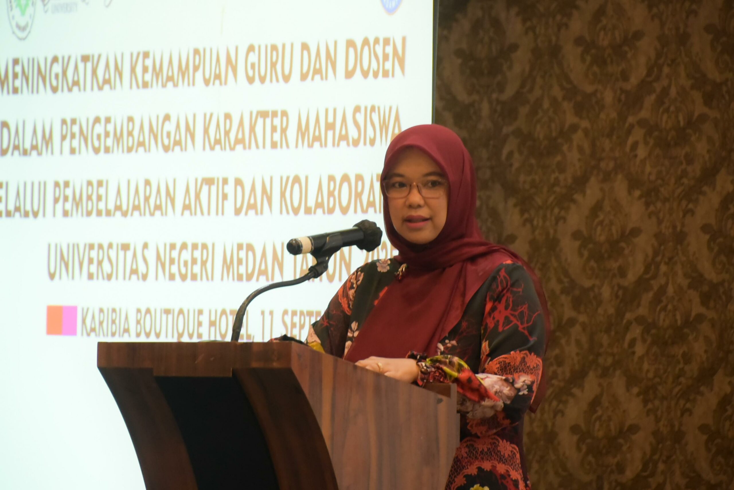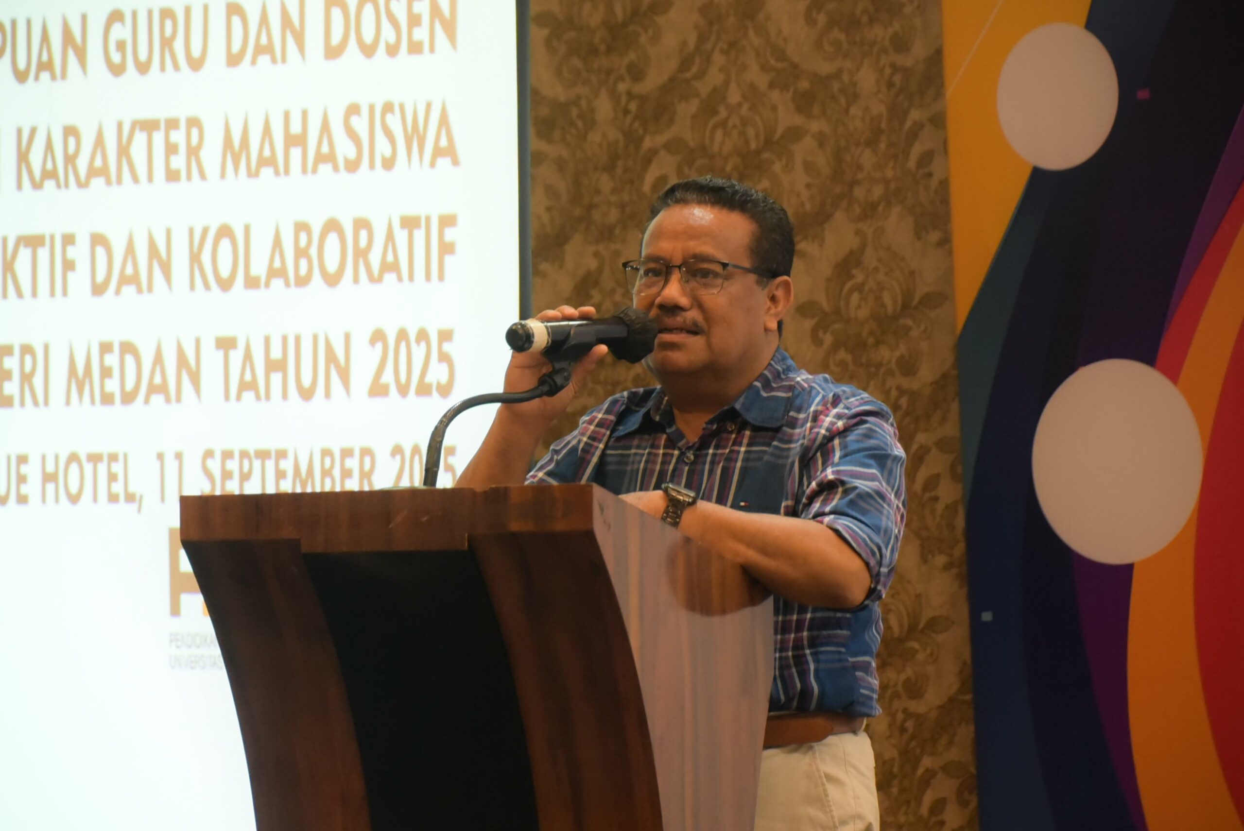 Unimed menggelar kegiatan Meningkatkan Kemampuan Guru dan Dosen Dalam Pengembangan Karakter Mahasiswa Melalui Pembelajaran Aktif dan Kolaboratif Universitas Negeri Medan Tahun 2025 di Karibia Boutique Hotel Medan pada Kamis, (11/09).