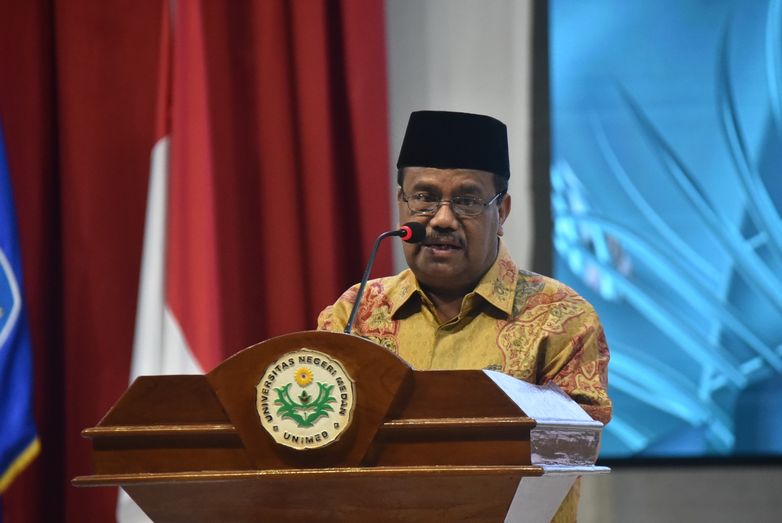 Dalam sambutannya, Rektor Unimed Prof. Dr. Ir. Baharuddin, ST., M.Pd. mengatakan Peringatan Maulid Nabi Muhammad SAW ini juga relevan dengan tantangan zaman yang kita hadapi. Di era Revolusi Industri 5.0 menuju 6.0, kita berhadapan dengan derasnya arus teknologi dan perubahan sosial. Namun, nilai-nilai ajaran Rasulullah tetap menjadi kompas moral yang akan mengarahkan kita agar tidak terombang-ambing dalam gelombang modernitas. Ilmu pengetahuan dan teknologi memang penting, tetapi harus selalu diiringi dengan akhlak, etika, dan tanggung jawab sosial. Di sinilah pentingnya integrasi antara ilmu, iman, dan akhlak. Universitas Negeri Medan berkomitmen untuk menjadikan kampus ini sebagai rumah pengembangan ilmu pengetahuan sekaligus pusat pembentukan karakter. Semoga semangat Maulid Nabi ini memperkuat tekad kita untuk membangun peradaban yang lebih baik melalui pendidikan yang kompleks.