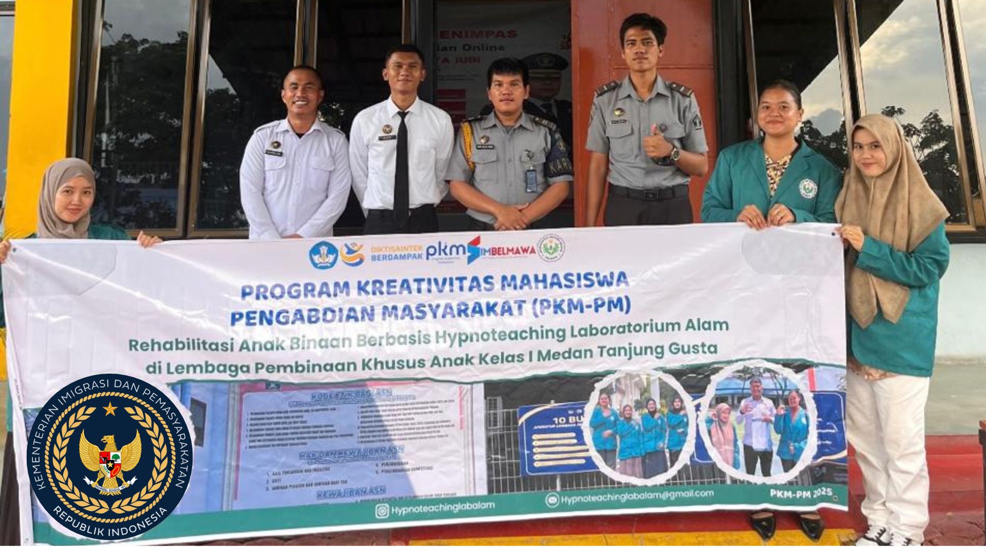 Tim Program Kreativitas Mahasiswa Pengabdian Kepada Masyarakat (PKM-PM) Universitas Negeri Medan melaksanakan kegiatan Rehabilitasi Anak Binaan Berbasis Hypnoteaching Laboratorium Alam di Lembaga Pembinaan Khusus Anak (LPKA) Kelas I Medan Tanjung Gusta. Kegiatan Hypnoteaching Laboratorium Alam dirancang sebagai program pembinaan inovatif yang memadukan pembelajaran berbasis lingkungan dengan pendekatan psikologis berupa metode hypnoteaching untuk memperbaiki kondisi psikis, meningkatkan tingkat fokus, dan inovasi anak binaan sehingga siap untuk menghadapi masa depan dalam bermasyarakat.