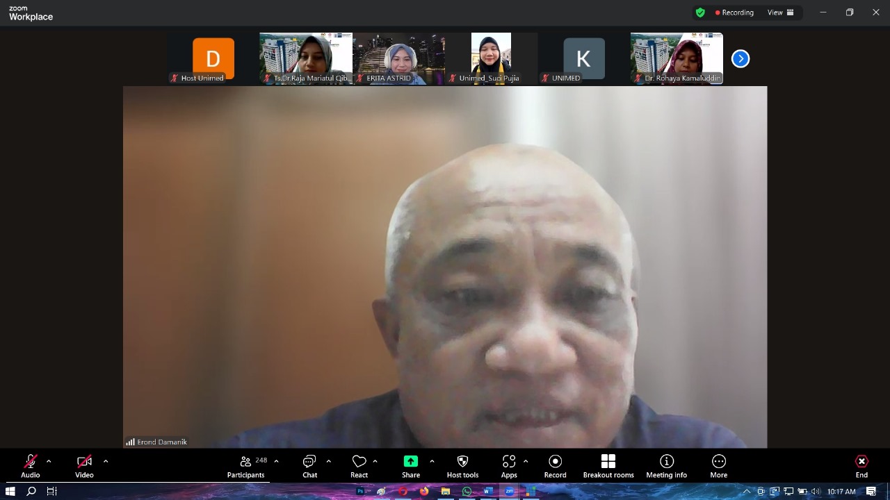 Lebih lanjut, Prof. Erond juga mengingatkan bahwa pemanfaatan kecerdasan buatan (AI) selain membawa banyak manfaat, juga memiliki potensi dampak negatif, terutama dalam keterampilan menulis mahasiswa. “Kami berharap narasumber kita Ts. Dr. Raja Mariatul Qibtiah binti Raja Jaapar dapat berbagi tips dan solusi praktis bagi mahasiswa dalam mengoptimalkan penggunaan AI, sehingga teknologi ini tidak mengurangi kemampuan dasar, melainkan justru memperkuat kompetensi akademik mahasiswa,” tutup Prof. Erond.
