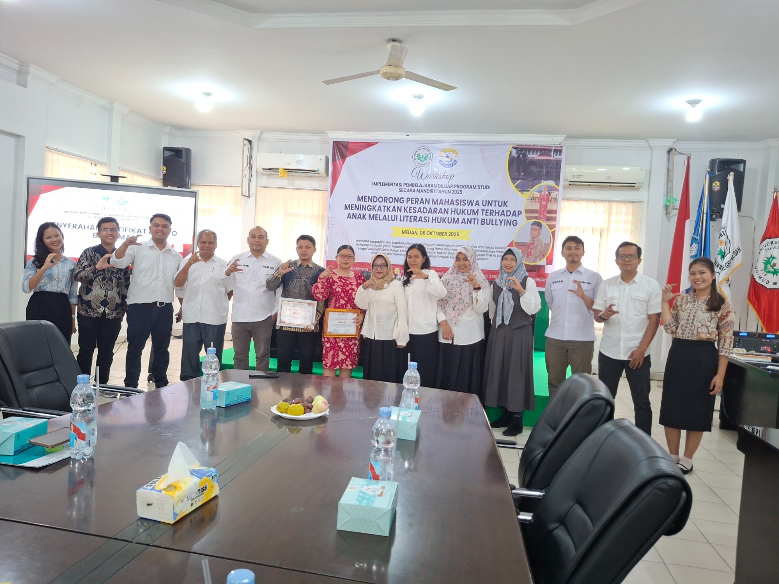 Program Studi Hukum Bisnis Fakultas Ilmu Sosial Universitas Negeri Medan menyelenggarakan Workshop dengan Tema Mendorong Peran Mahasiswa Untuk Meningkatkan Kesadaran Hukum Terhadap Anak Melalui Literasi Hukum Anti Bullying pada hari senin tanggal 06 Oktober 2025 di Aula Lantai 3 FIS UNIMED. Terselenggaranya workshop ini merupakan rangkaian dari kegiatan pengimplementasi pembelajaran diluar program studi secara mandiri yang bertujuan untuk mengembangkan kemampuan dan kompetensi mahasiswa Program Studi Hukum Bisnis dalam Berperan Aktif untuk meningkatkan kesadaran hukum anak melalui Literasi Anti Bullying. Nantinya, setelah kegiatan ini dilakukan, seluruh mahasiswa akan melakukan Campaign sebagai Proyek Kemanusiaan sekaligus mengimplementasikan Pembelajaran Praktis dan mengintegrasikan pendidikan karakter Peduli dan Empati Terhadap Peningkatan Kasus Bullying di Indonesia melalui Peningkatkan Kesadaran Hukum Terhadap Anak dengan Literasi Hukum “Anti Bullying”.