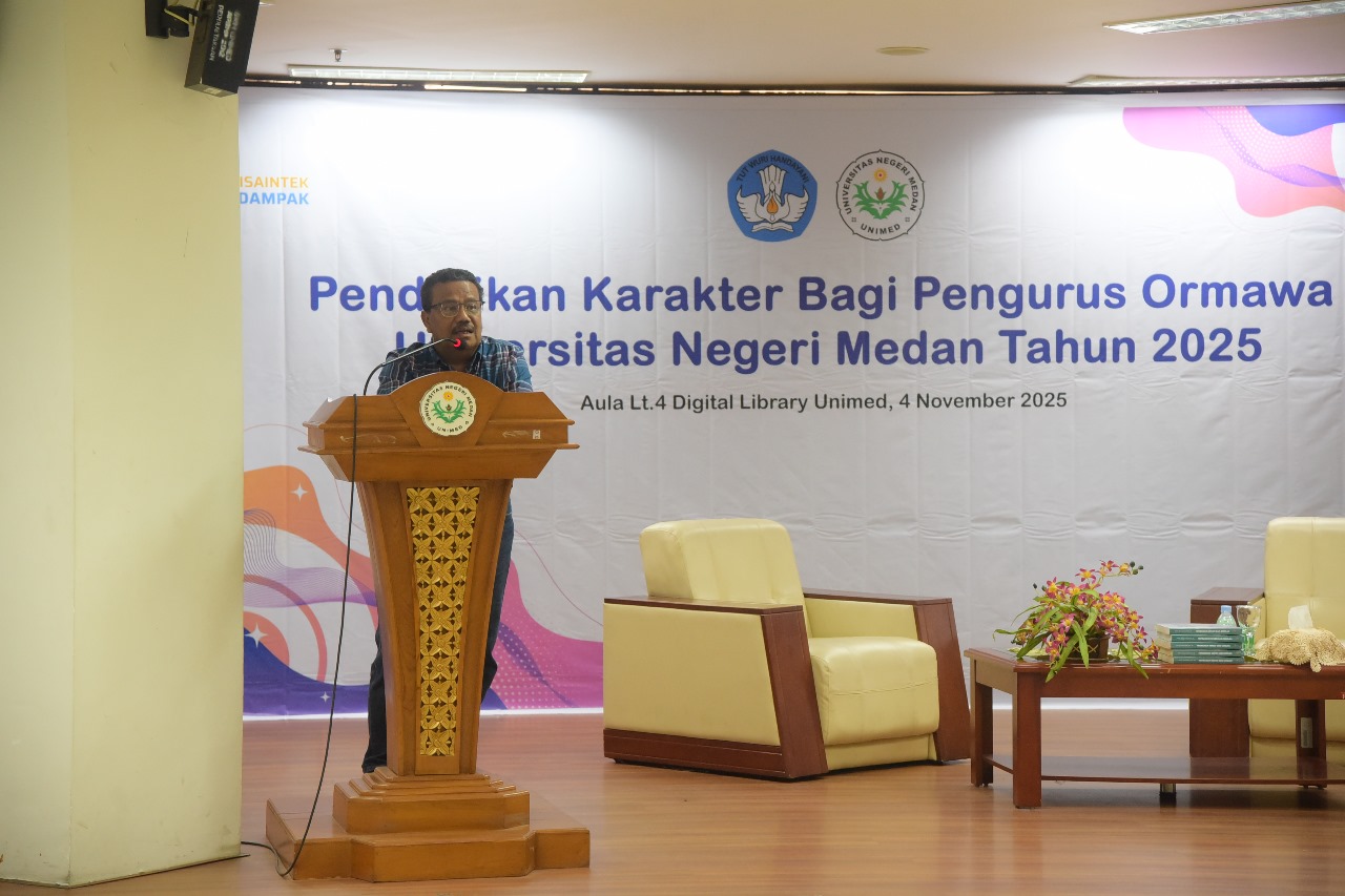 Universitas Negeri Medan (Unimed) menyelenggarakan kegiatan Pendidikan Karakter bagi Pengurus Organisasi Mahasiswa (Ormawa) pada Selasa, (4/11) di Aula Lt. IV Digital Library Unimed. Dengan narasumber Prof. Dr. Syawal Gultom, M.Pd. (Ketua Senat Unimed) dan moderator Dr. Tappil Rambe, M.Si. (Wakil Dekan II FIS).