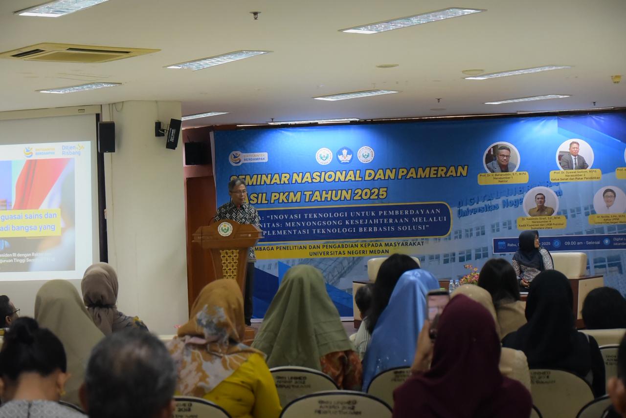 Medan – Lembaga Penelitian dan Pengabdian kepada Masyarakat (LPPM) Universitas Negeri Medan (Unimed) sukses menyelenggarakan Seminar Nasional dan Pameran Hasil PKM tahun 2025 dengan Tema “ Inovasi Teknologi Untuk Pemberdayaan Komunitas: Menyongsong Kesejahteraan Melalui Implementasi Teknologi Berbasis Solusi” di Gedung Digital Library Unimed pada hari Rabu 05 November 2025.