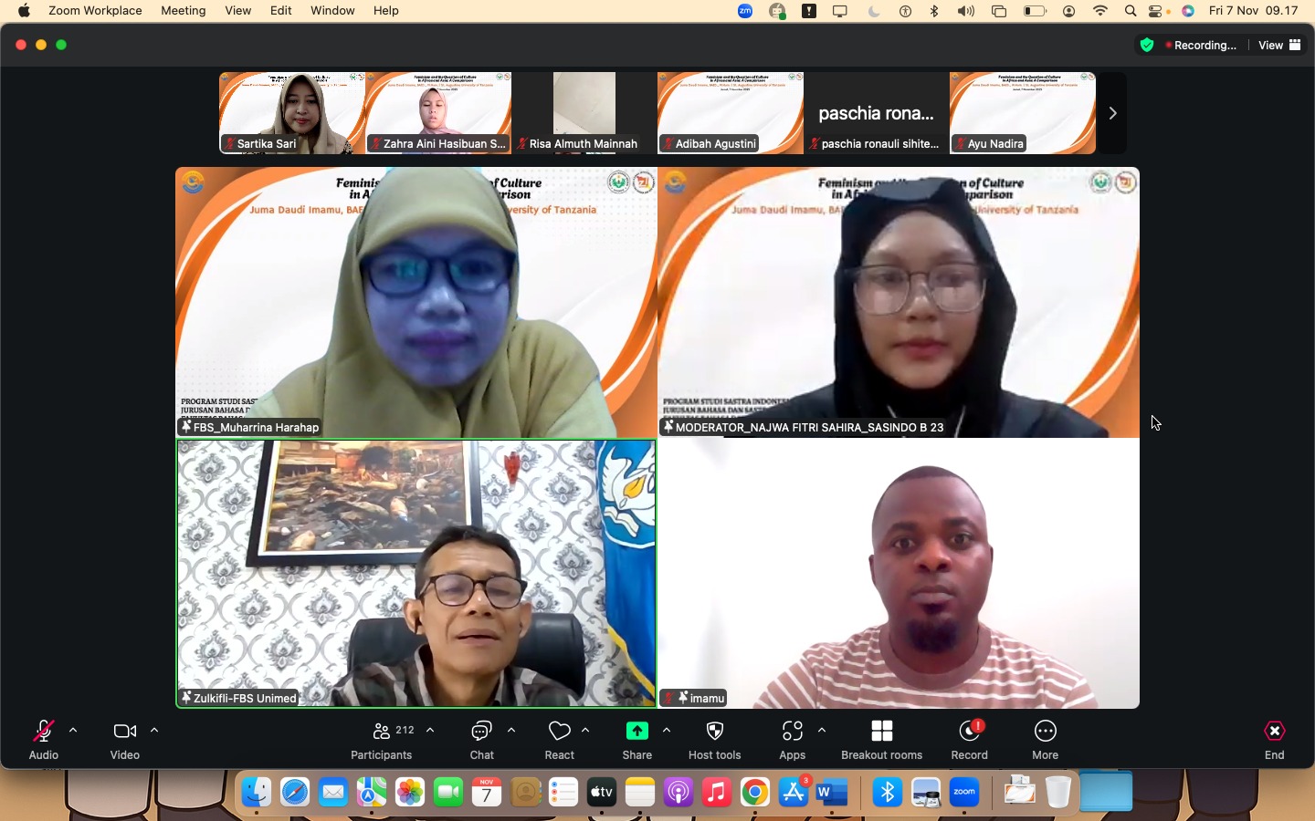 Medan, 7 November 2025 — Program Studi Sastra Indonesia, Jurusan Bahasa dan Sastra Indonesia, Fakultas Bahasa dan Seni (FBS), Universitas Negeri Medan (UNIMED) menyelenggarakan kegiatan International Guest Lecture on Comparative Literature dengan tema “Feminism and the Question of Culture in Africa and Asia: A Comparison.” Kegiatan ini dilaksanakan secara daring melalui Zoom pada Jumat, 7 November 2025, pukul 09.00 WIB hingga selesai.