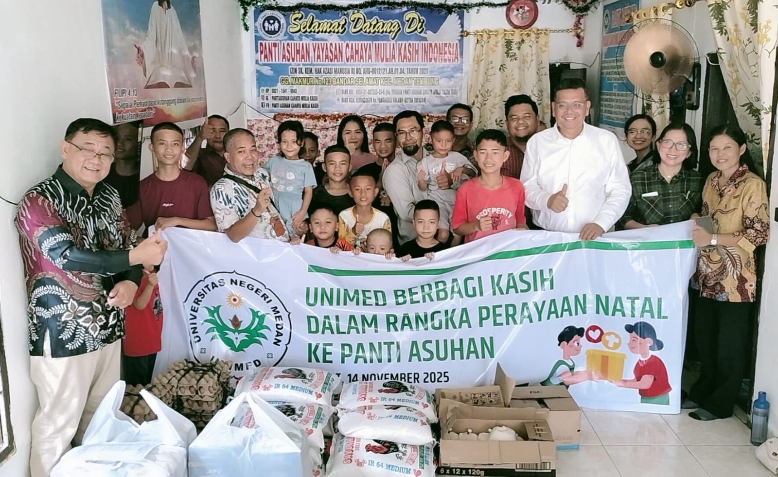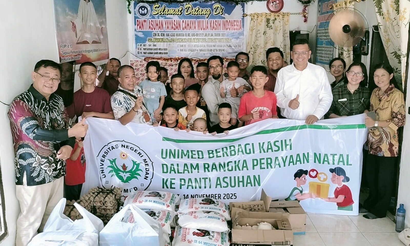 Forum Pelayanan Kristiani (FPK) Universitas Negeri Medan bersama Panitia Natal Oikumene Unimed Tahun 2025 melaksanakan kegiatan aksi sosial Natal dengan mengunjungi dua panti asuhan, yakni Panti Asuhan Amal Kasih Bersama di Jalan Sehati Medan serta Panti Asuhan Yayasan Cahaya Mulia Kasih Indonesia di Komplek TVRI, Bandar Selamat Tembung Deli Serdang (14/11/2025). Kegiatan ini menjadi bagian dari rangkaian Perayaan Natal Oikumene Unimed Tahun 2025 yang mengusung semangat pelayanan, kasih, dan kepedulian terhadap sesama.