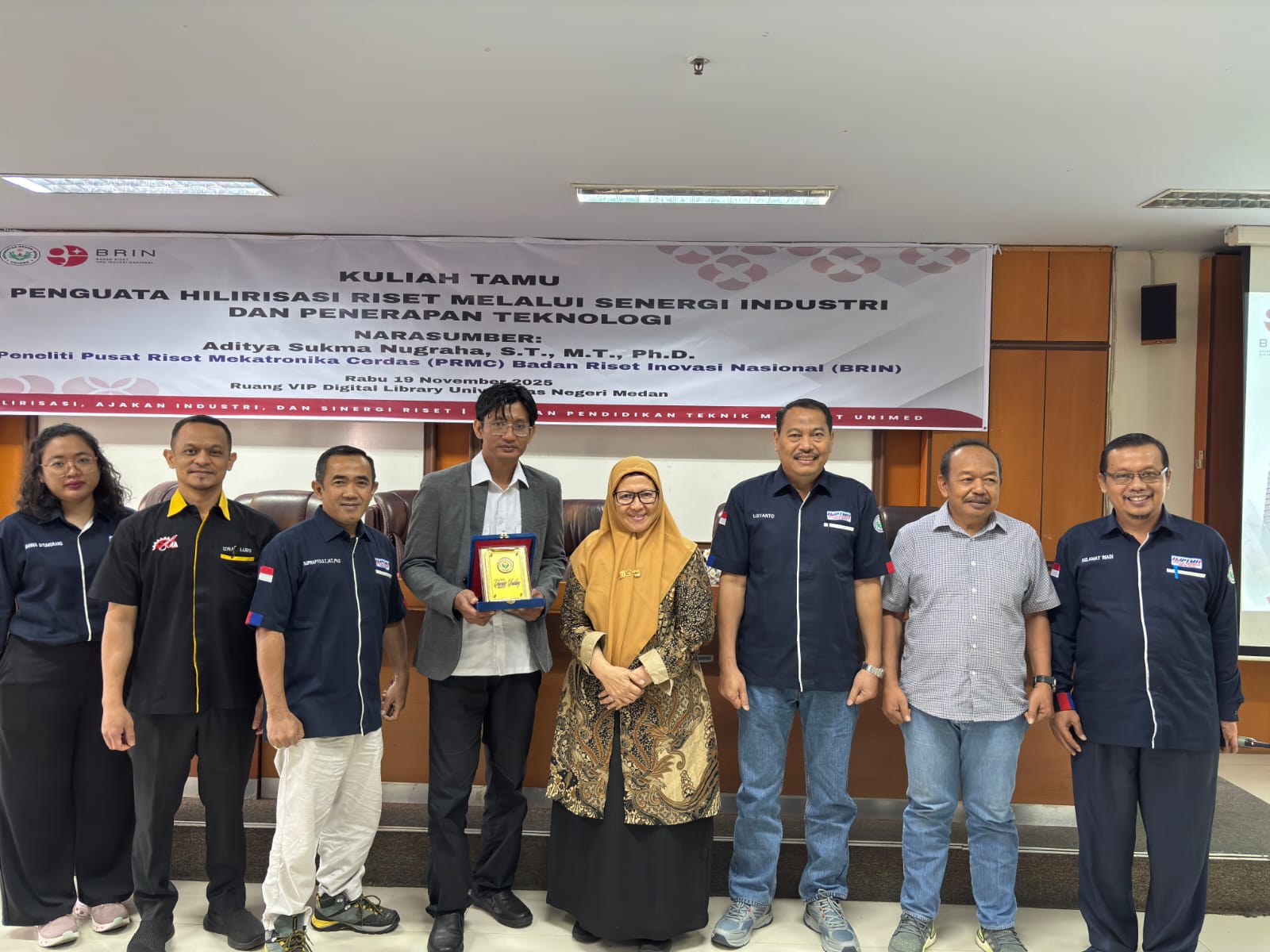 Jurusan Pendidikan Teknik Mesin Fakultas Teknik Universitas Negeri Medan berkolaborasi dengan Pusat Riset Mekatronik Cerdas (PRMC) Badan Riset Inovasi Nasional (BRIN) menyelenggarakan Kuliah dan Diskusi Umum Hilirisasi Penelitian pada 19 November 2025.