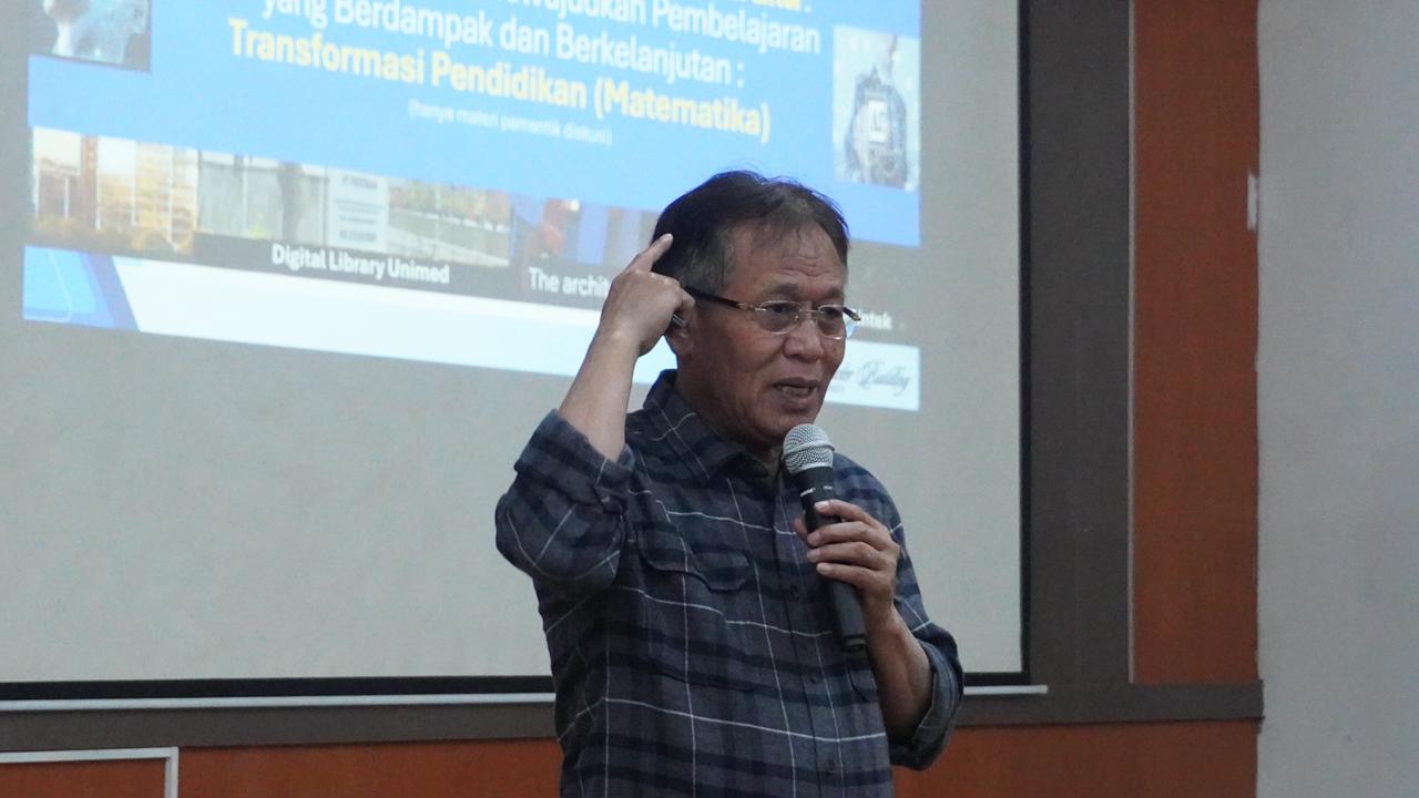 Prof. Dr. Syawal Gultom, M.Pd menyampaikan Transformasi pendidikan matematika dipandang sebagai langkah strategis untuk menciptakan pembelajaran yang relevan, berkelanjutan, dan selaras dengan perkembangan teknologi, sekaligus menempatkan guru sebagai agen utama yang memastikan penggunaan AI tetap berlandaskan nilai etika dan karakter.(Humas Unimed)