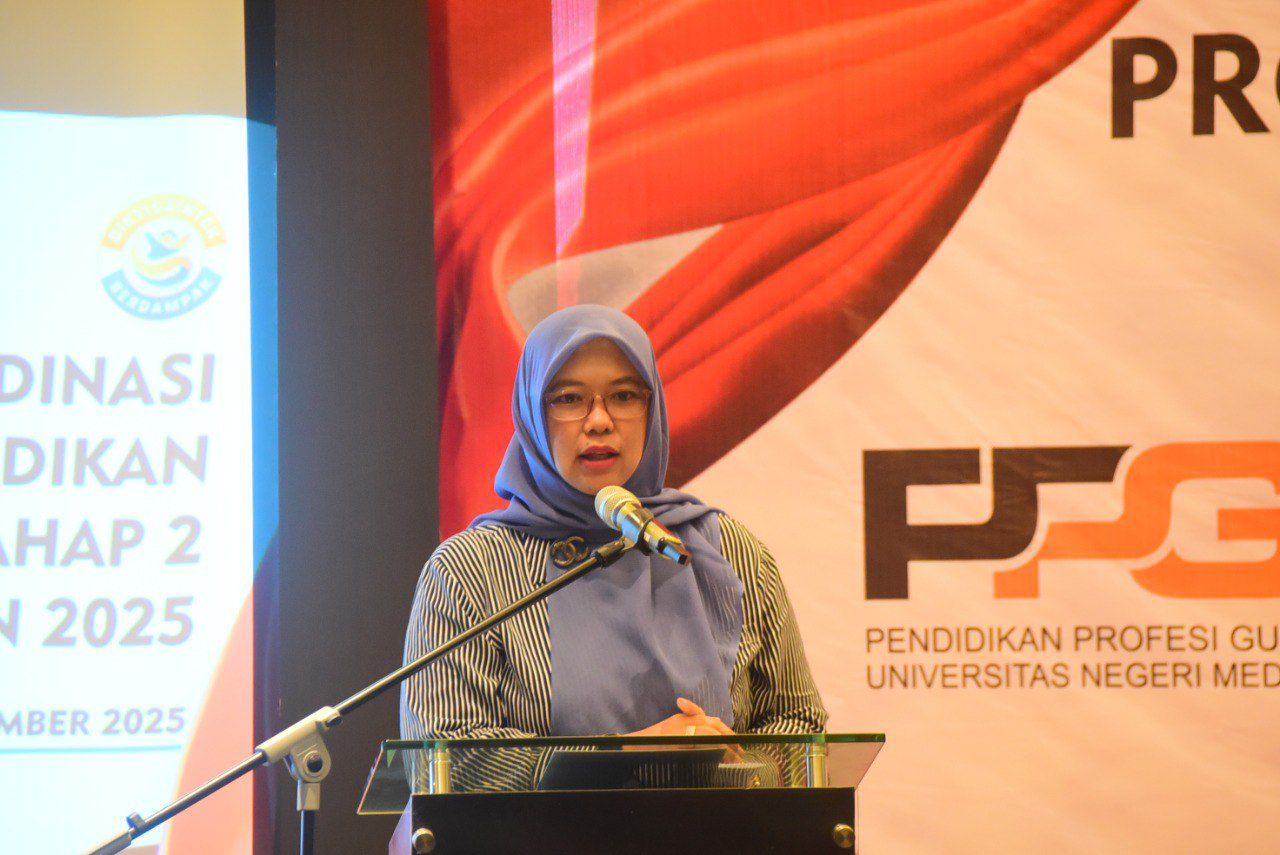 Dr. Yan Azhari, S.E., M.Pd. Dalam kata sambutannya Penyusunan laporan kegiatan Pendidikan Profesi Guru (PPG) Guru Tertentu Tahap 2 Universitas Negeri Medan Tahun 2025 bukan sekedar untuk kebutuhan administrasi saja namun merupakan wujud akuntabilitas dan komitmen kita bersama dalam menjaga kualitas penyelenggaraan PPG. Laporan ini akan menjadi dasar evaluasi, rujukan, perbaikan, dan sekaligus refleksi guna memastikan program Pendidikan Profesi Guru yang dilaksanakan oleh UNIMED benar-benar memberikan dampak terhadap peningkatan kompetensi guru dan mutu pendidikan di Indonesia.(Humas Unimed)