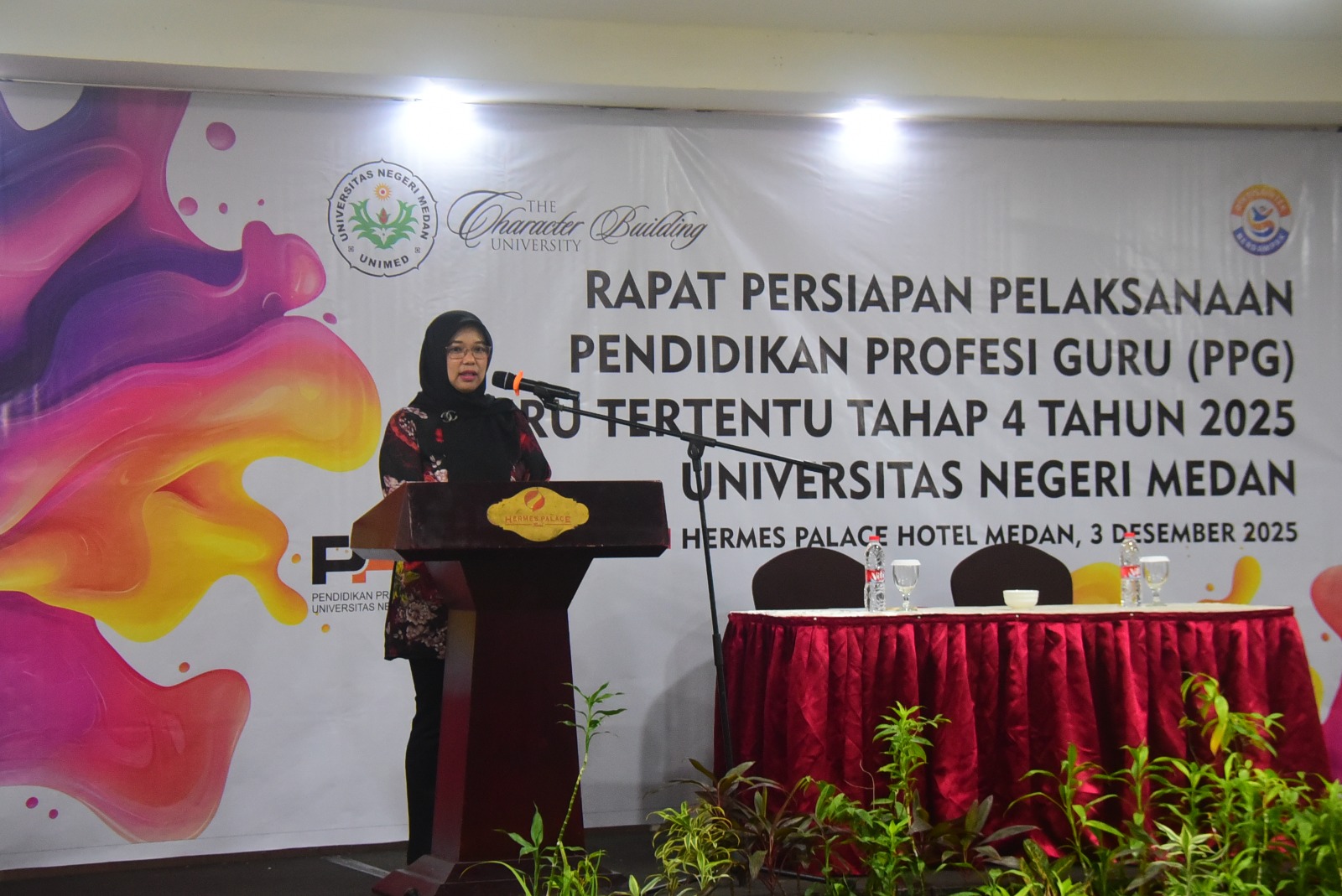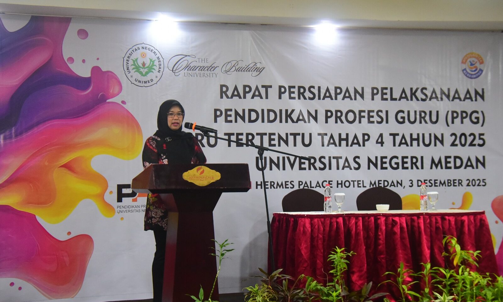 Universitas Negeri Medan (Unimed) melaksanakan Rapat Persiapan pelaksanaan Pendidikan Profesi Guru (PPG) Guru Tertentu Tahap Tahun 2025 . pada Rabu 3 Desember di Hermes Palace Hotel.