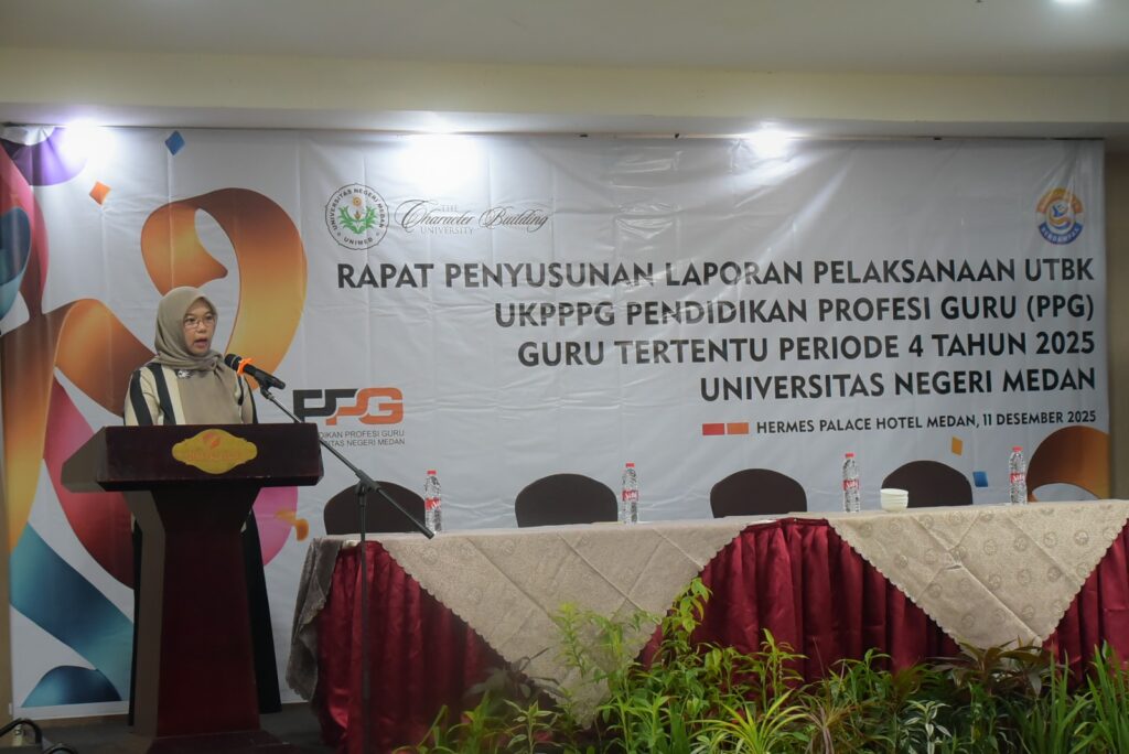 Universitas Negeri Medan (Unimed) menggelar Rapat Penyusunan Laporan Plaksanaan UTBK UKPPPG Pendidikan Profesi Guru (PPG) Guru Tertentu Periode 4 Tahun 2025. Pada Kamis 11 Desember 2025 di Hermes Palace Hotel Medan.