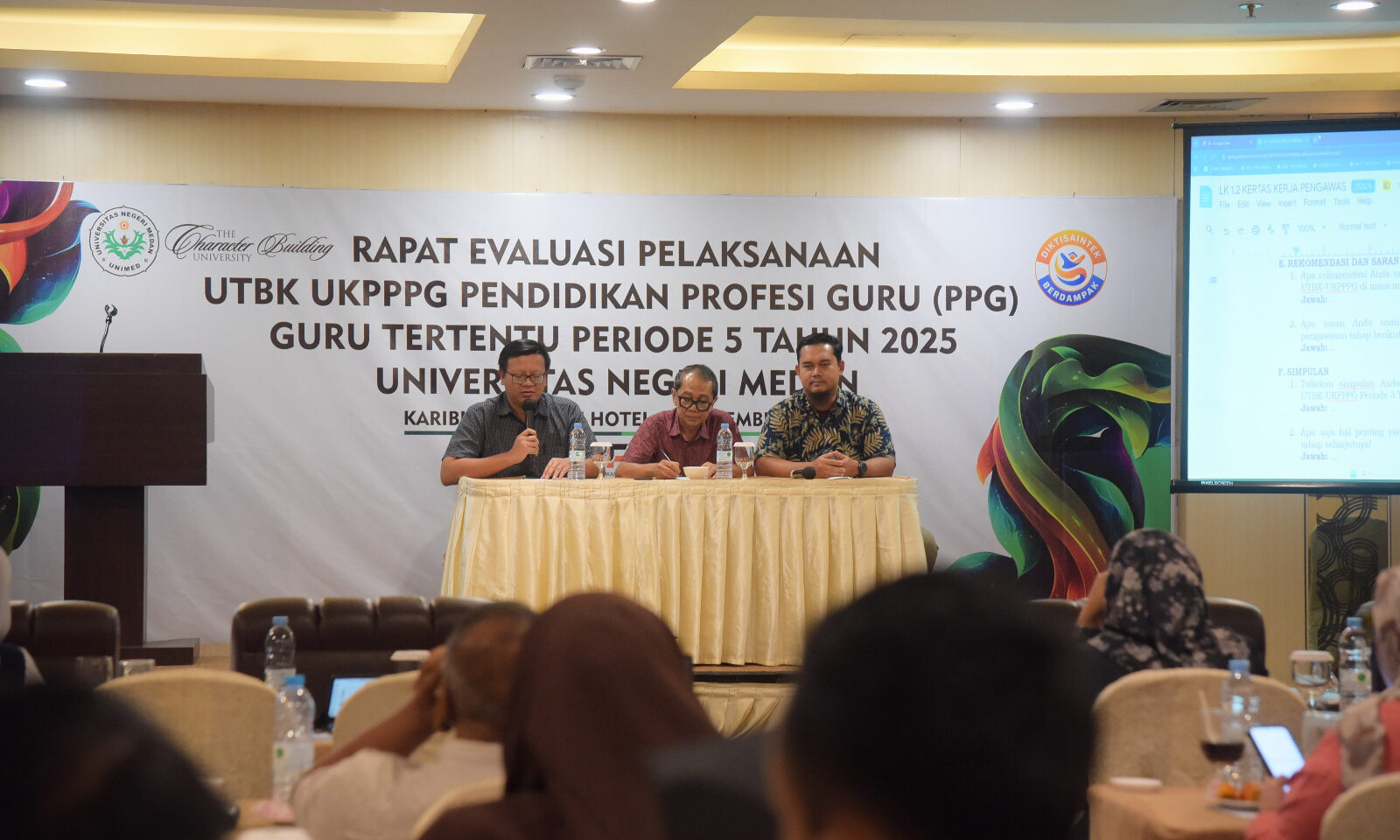 Universitas Negeri Medan (Unimed) menggelar Rapat Evaluasi Pelaksanaan UTBK UKPPPG Pendidikan Profesi Guru (PPG) Guru Tertentu (Guter) Periode 5 Tahun 2025 di Karibia Boutique Hotel, (18/12/2025).