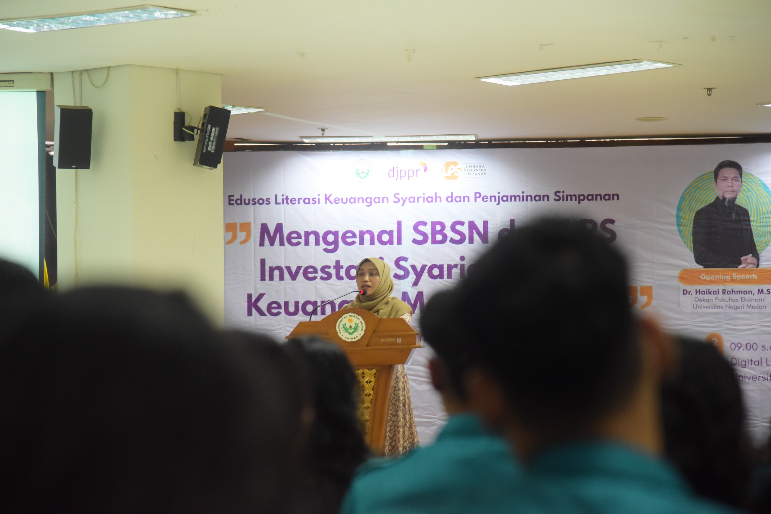 Di tengah kebutuhan generasi muda untuk memahami dinamika ekonomi dan mengambil keputusan finansial secara bijak, Direktorat Jenderal Pengelolaan Pembiayaan dan Risiko (DJPPR) Kementerian Keuangan (DJPPR Kemenkeu) beserta Lembaga Penjaminan Simpanan (LPS) berkolaborasi dengan Fakultas Ekonomi Universitas Negeri Medan (FE UNIMED) menyelenggarakan Edusos Literasi Keuangan Syariah dan Penjaminan Simpanan.