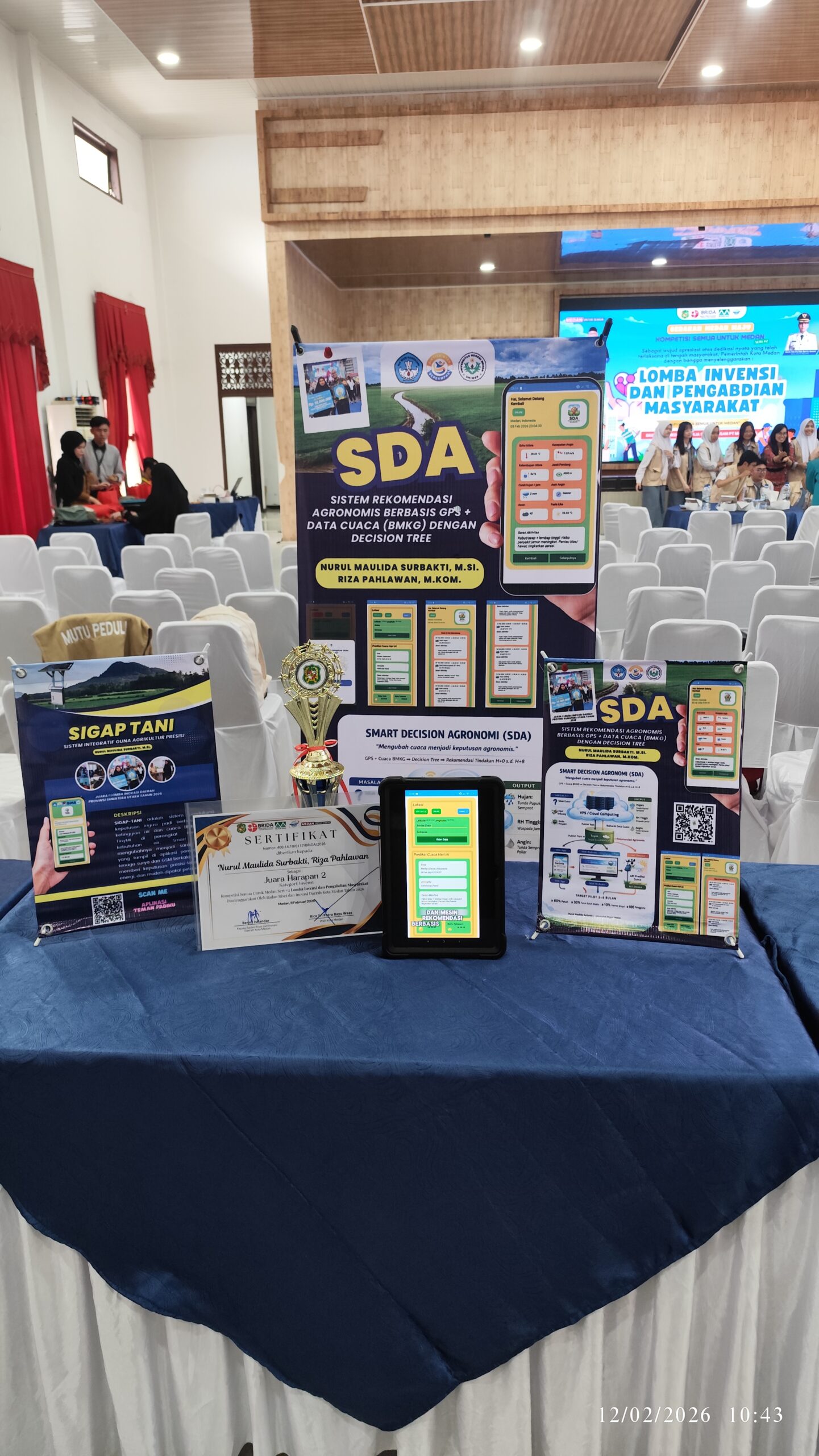 Tim dosen UNIMED mengusung karya berjudul: Smart Decision Agronomi (SDA) Sistem Rekomendasi Agronomi berbasis GPS dan Data Cuaca dengan Decision Tree.
