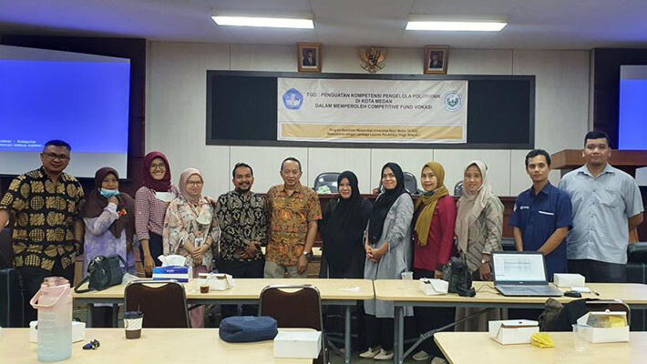 Tim Dosen Program Studi Magister Administrasi Pendidikan Pascasarjana Unimed bersama 3 mahasiswa melaksanakan kegiatan Pengabdian Kepada Masyarakat di Kota Medan tentang penyusunan Proposal Penguatan Pendidikan Tinggi Vokasi (PPPTV)-PTS dengan judul “Peningkatan Kompetensi Pengelola Politeknik di Kota Medan dalam Memperoleh Competitive Fund Vokasi Menggunakan Model Manajemen