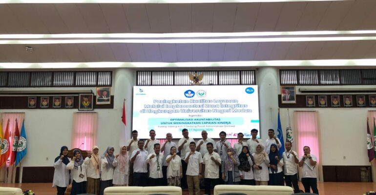 Kegiatan optimalisasi akuntabilitas untuk meningkatkan capaian kinerja Zona Integritas (ZI) Unimed dilaksanakan pada Senin, 11 Agustus 2025. Bertempat di Ruang Sidang A Lt. 3 Gedung Pusat Administrasi Unimed. Acara ini dibuka secara resmi oleh Ketua RBZI Unimed, Prof. Dr. Muhammad Yusuf, M.Si., dan menghadirkan narasumber